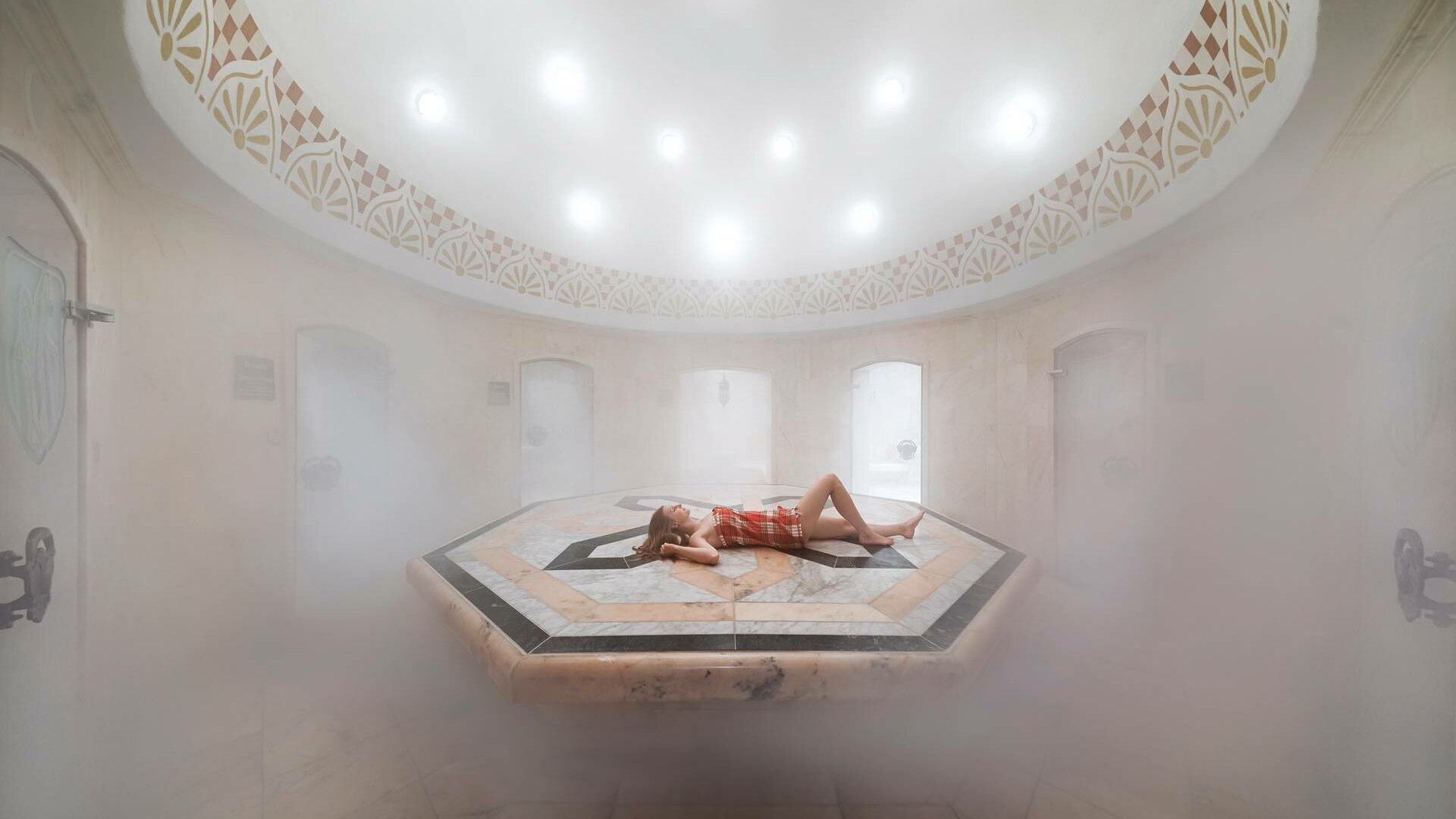 - Punti salienti: lago riscaldato, hammam e torre cinese